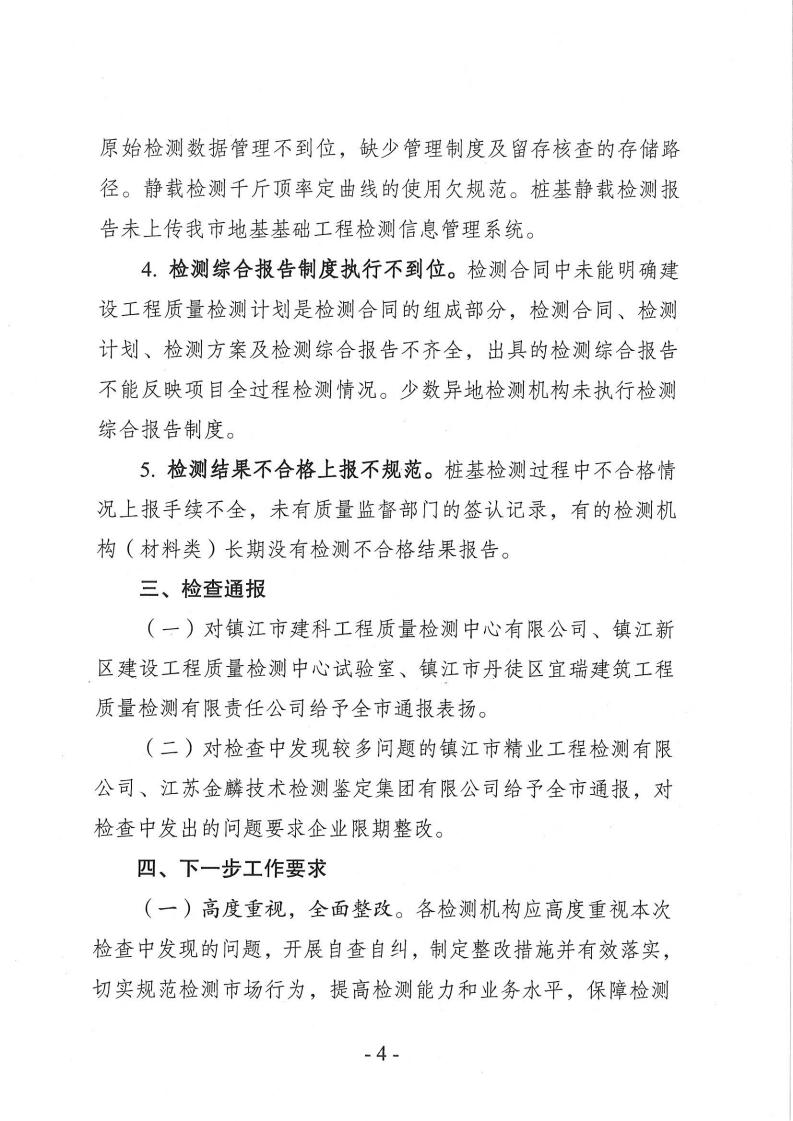 关于镇江市2023年度工程治理检测机构专项检查情况的通报
